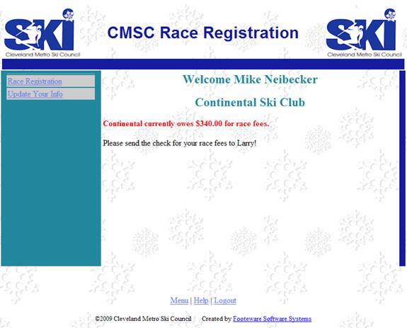 navigation for the menu will appear to the left side of the window. The primary application is Race Registration where you select the