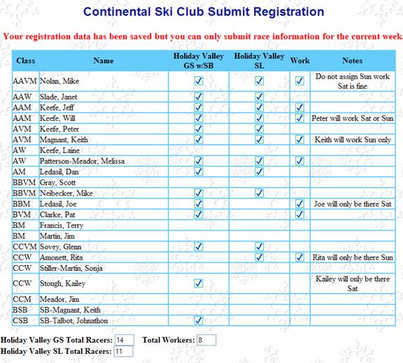 on the Save Race Registration to save the data to the database. If you cancel or close the page without