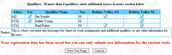 CCQ qualifiers race with Group III and include Senior Vets class (SV). SBQ are snowboard qualifiers. Please check the Vet box for any racers who will