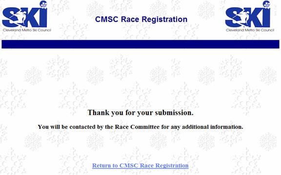 will send an email to the CMSC Racing mailbox and a copy to your email for your